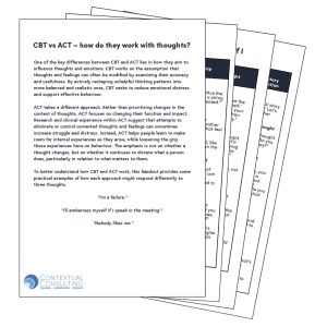 To clearly show how CBT and ACT might work, this handout provides some practical examples of how each approach might respond differently to three thoughts.