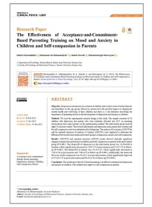 This study examined the impact of acceptance and commitment-based parenting training on children’s mood and anxiety levels, as well as parents’ levels of self-compassion. The research aimed to explore whether this specific approach to parenting education could improve emotional well-being in both children and their parents. The study was conducted with a sample of parents and their children, employing a structured intervention based on acceptance and commitment therapy (ACT) principles.